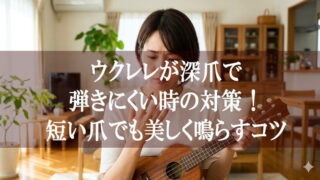 深爪でウクレレが弾きにくい時の対策を徹底解説!短い爪でも指先を立てて綺麗に鳴らすコツや、痛みを防ぐ便利グッズを紹介します。仕事や家事で爪を伸ばせない方も、正しい方法で快適に演奏を楽しみましょう。